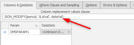 JSON_MODIFY(jsoncol, '$.idval', dataVal)A screenshot of the relevant part of the Row-Internal rule is shown below:
