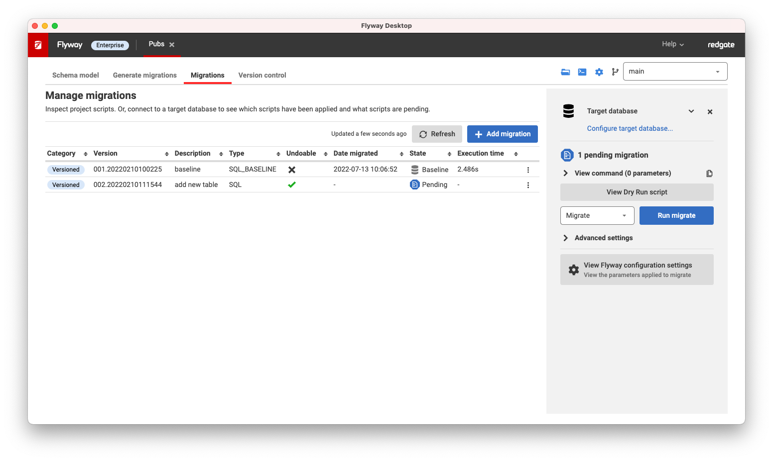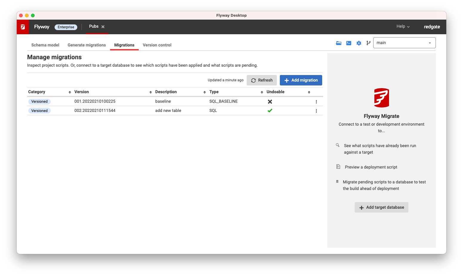- Add a target database, to see exactly which scripts have been applied to that target, how long they took to execute, and what scripts are pending.