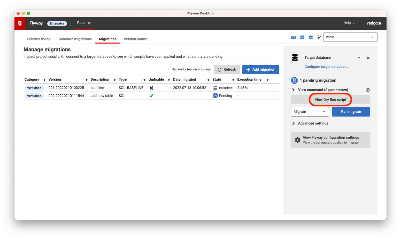 flyway migrate -environment=production -dryRunOutput=dryrun.sql