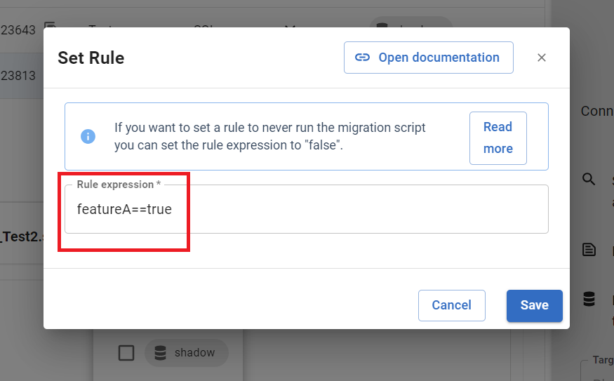 - Set the custom rule using the shouldExecute expression in <migration>.sql.conf file: