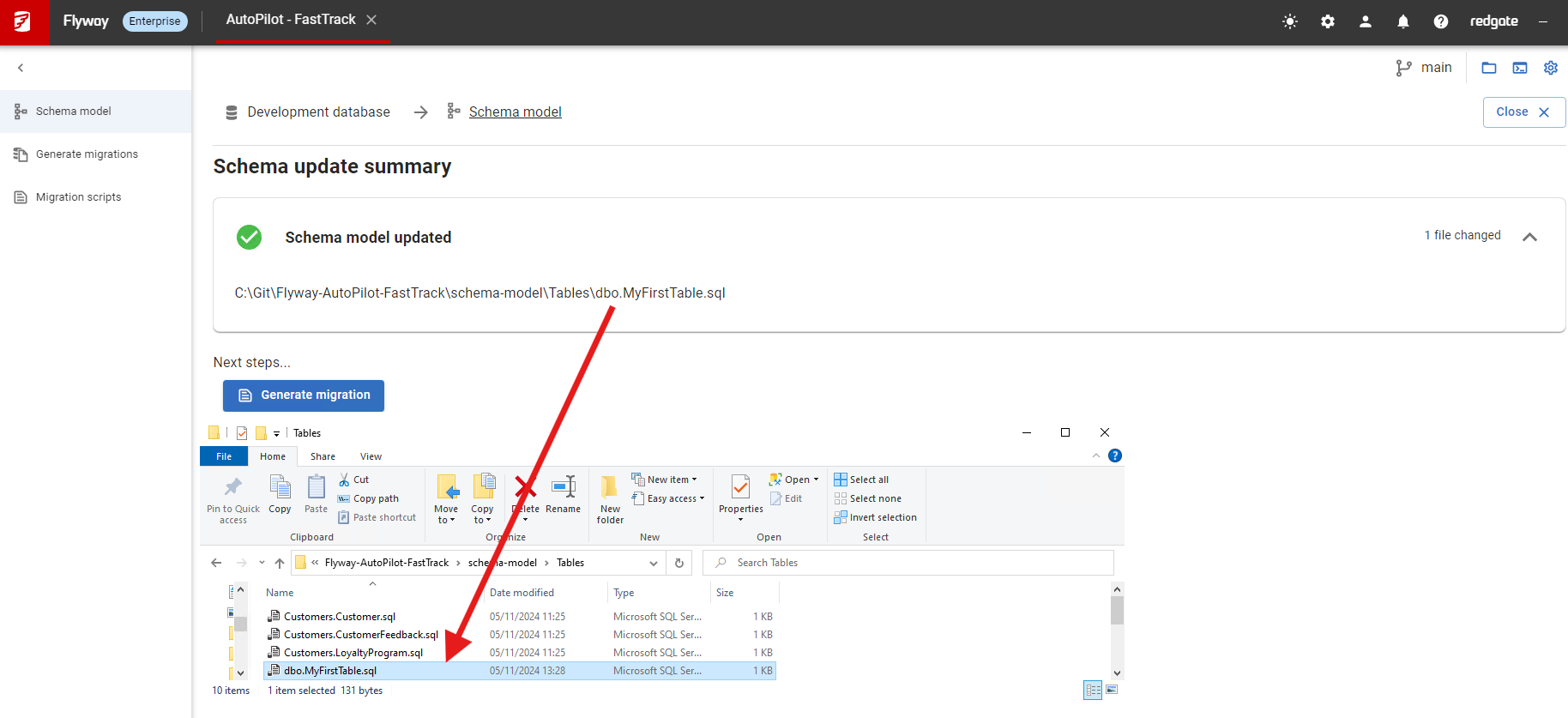This section will guide you through the process of using Flyway Desktop to capture any schema changes you make in the development database, saving those changes to the schema model, and ultimately using Flyway to generate versioned migration scripts.