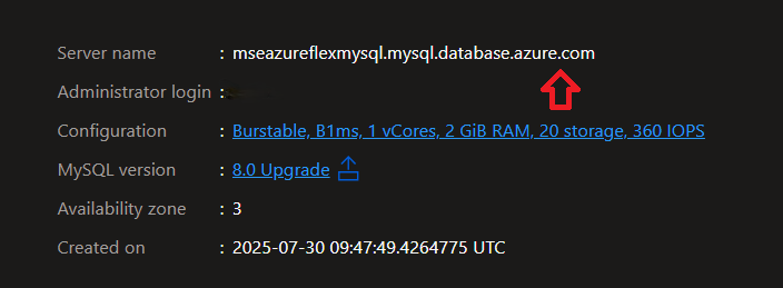 - In the Endpoint name field, enter the endpoint for the instance provided by Azure, this will typically end with ".*.mysql.database.azure.com". Please check the screenshot below to see where the endpoint name is (server name in this case)