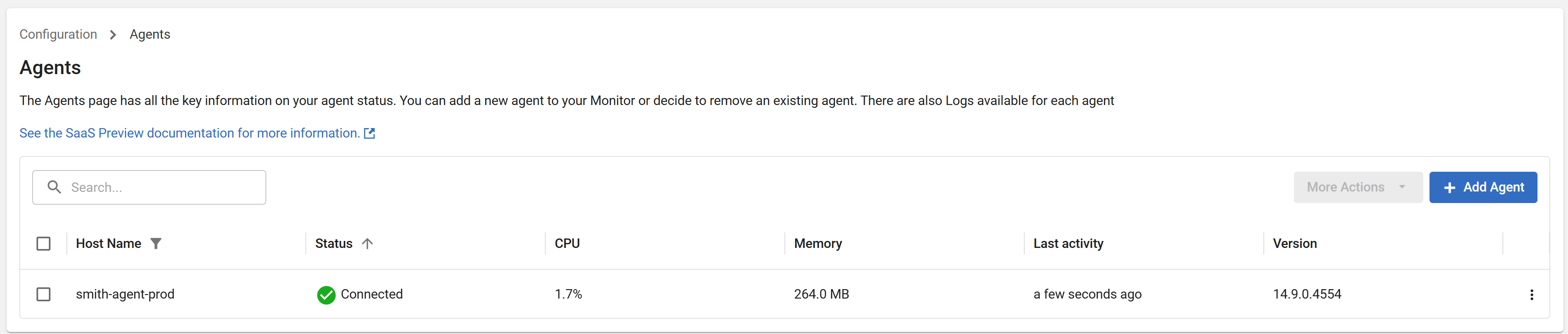 The platform will also tell you if your agent is out of date or if an update is available.