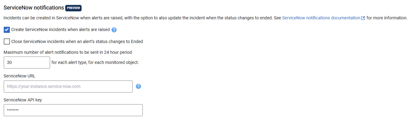 - Enter the ServiceNow URL that will be used to create ServiceNow incidents.