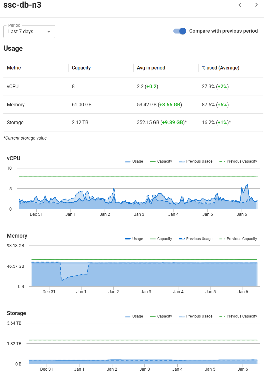 | Avg. vCPU used | The average CPU utilization across the selected time period, expressed as a percentage. |