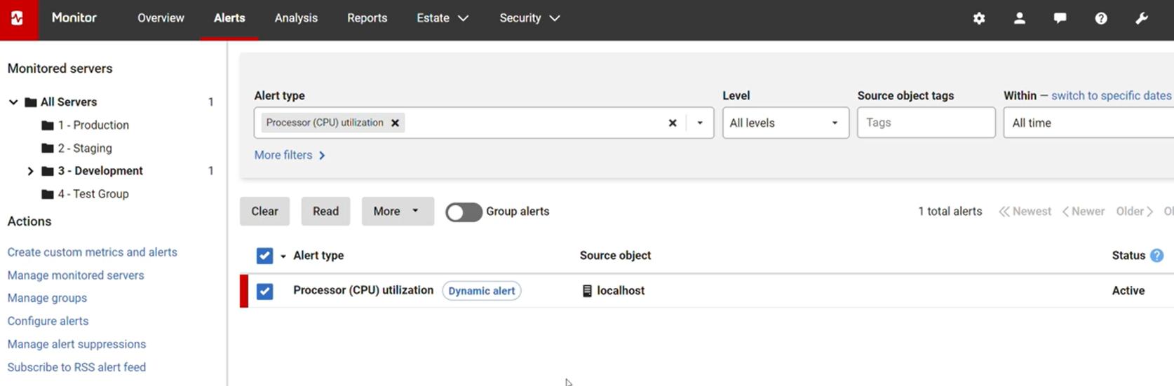 Traditionally, Redgate Monitor uses static thresholds to raise alerts. Alerts can be enabled or disabled, and their thresholds manually adjusted, after gaining a better understanding of the applications and activity patterns on the servers.