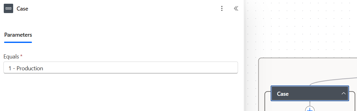In the configuration pane for each case, type the exact string or value that matches one of your group names. In this example, the case is configured to match the group called `1 - Production`: