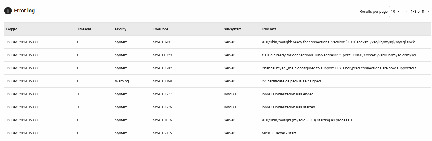 - SubSystem: The MySQL component or subsystem that generated the message (e.g., InnoDB, Replication, Server, Plugin).