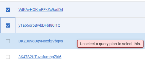If two query plans are already selected, the warning message below is displayed when hovering unselected rows.