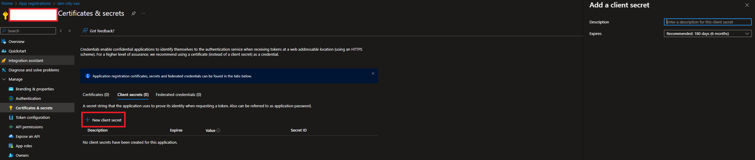 - Under Certificates & secrets, click 'New client secret' and specify a description and an expiry date. Take note of the client secret value. It will be required for configuring the OIDC authorization code flow later on.