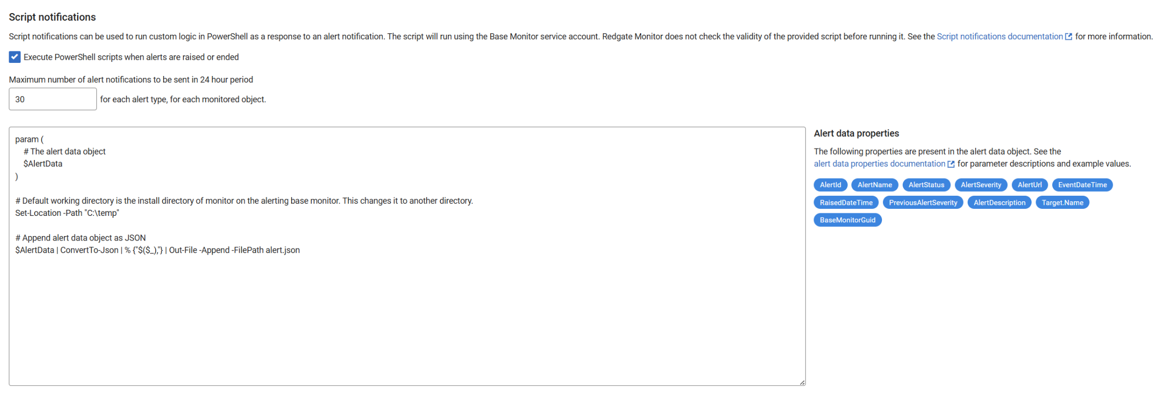 Note that like all other notification types, the scripts are configured per Base Monitor.