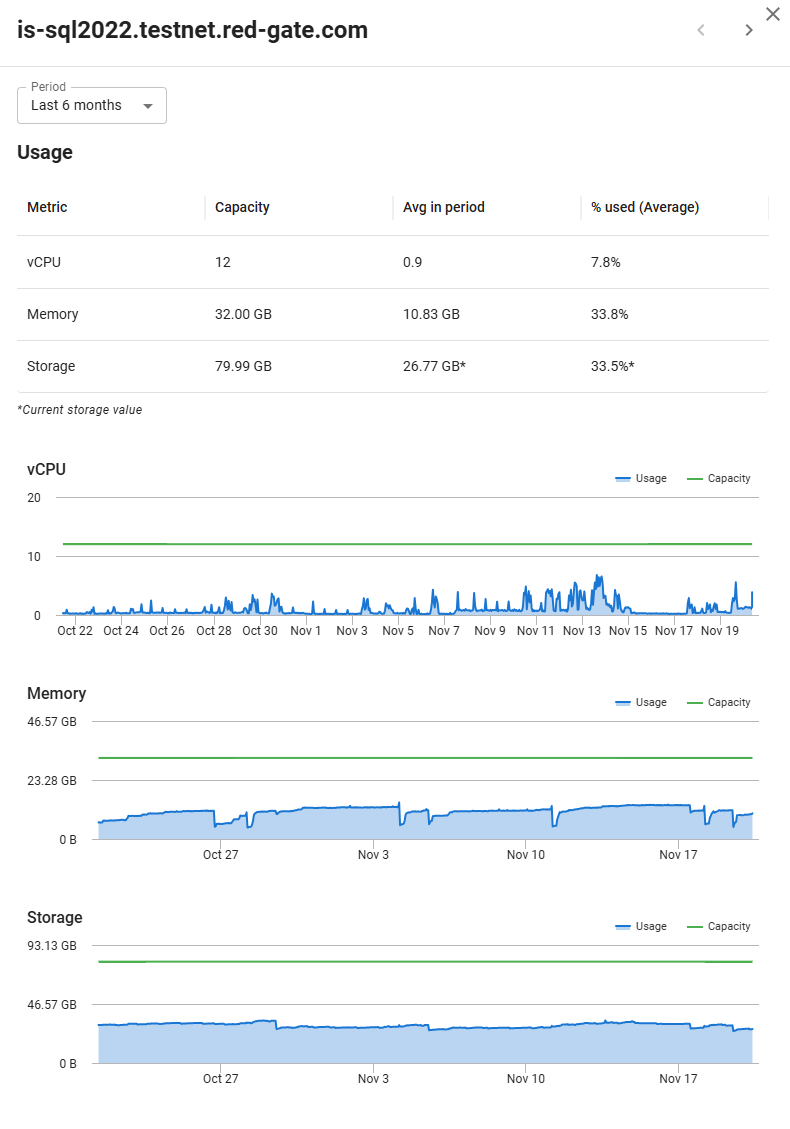 This page lists every virtual machine detected in your estate that hosts a monitored SQL Server instance. For each machine, you can view performance and capacity metrics averaged over a selected time period. Only virtual machines that host SQL Server instances are currently included.