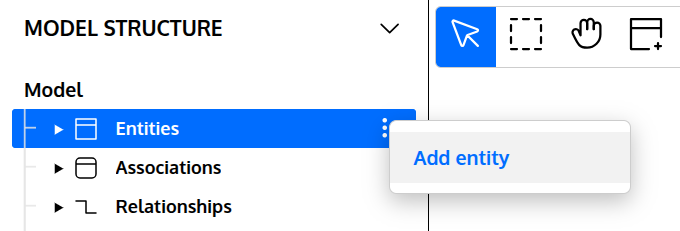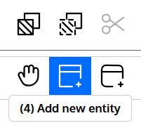 To add a new entity, click on the Add new entity button or press 4 on your keyboard, and then: click wherever in the modeling space.