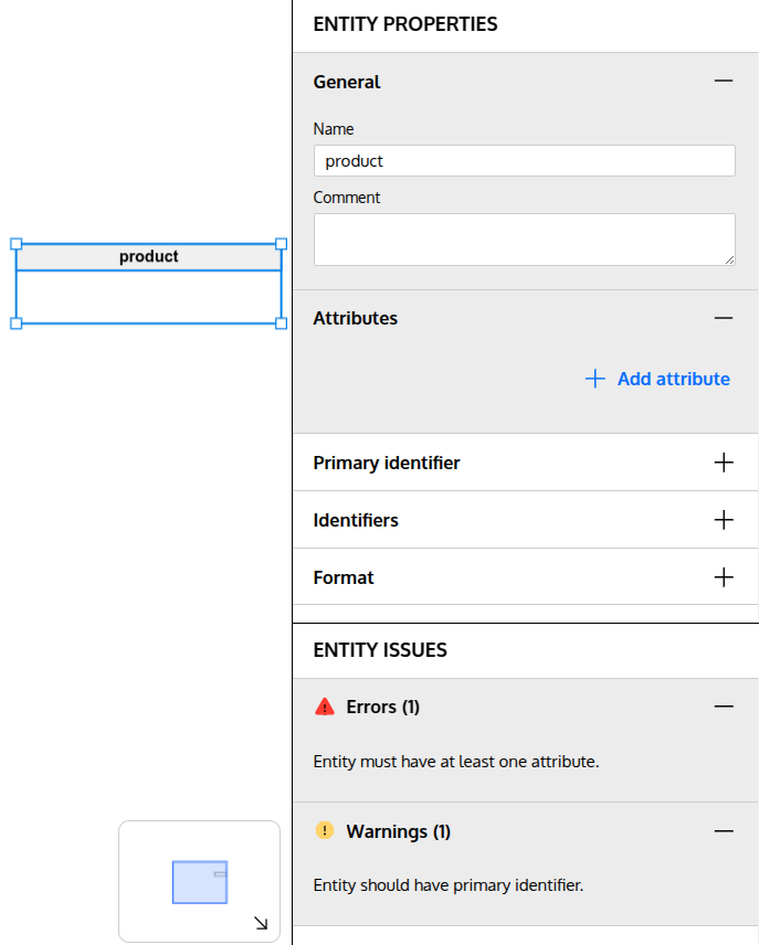 Click on the newly-created entity, and in the right panel, you'll be able to type in the name for it – product.