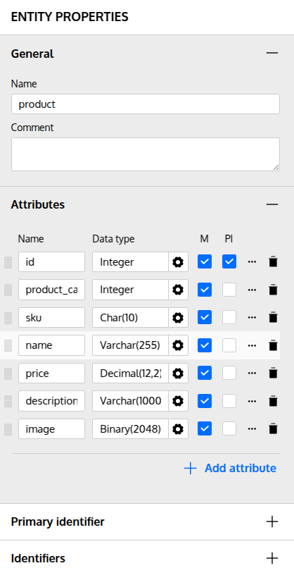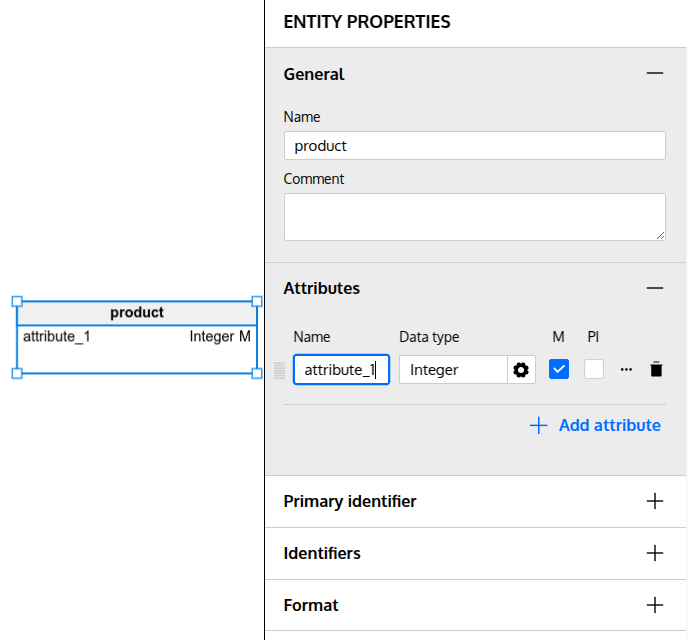 Now, we're going to see how entities look in Redgate Data Modeler and try to create an example entity – for a shop's products. What we need to know is: