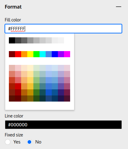 You may also change the colors of the entity using the predefined palette or by typing in the hex code of the color, and you may lock its size.
