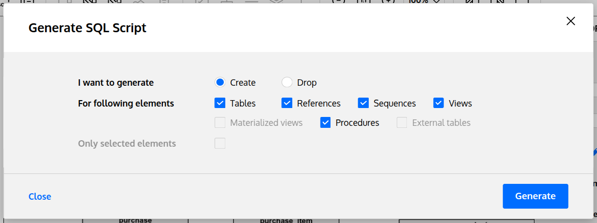 Now press Ctrl+G (or Cmd+G) or click on the 'SQL' icon in the top bar to show the options dialog: