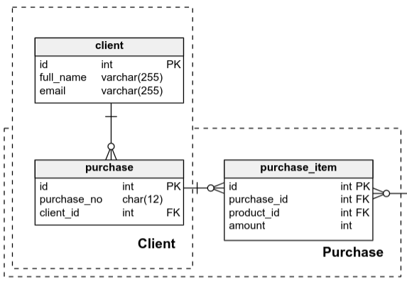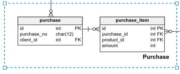 What’s more, areas can overlap. Let’s say we want to have a Client area with the purchase table inside, which is already in the Purchase area.