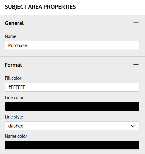 In properties, you can change the area’s name and give it a unique look by changing colors or a line’s style.