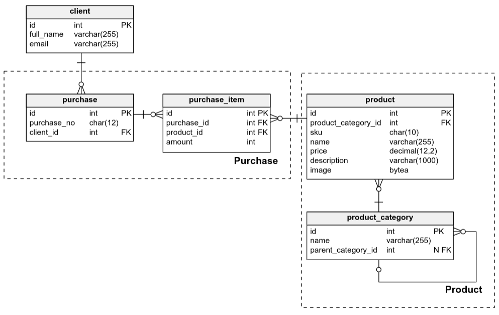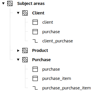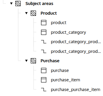 We’re going to use subject areas on a model of a simple shop. Our aim is to create two areas – Purchase and Product and put all related elements into them.