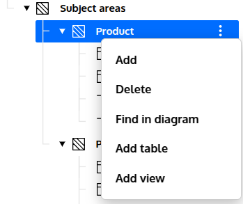 Right-click on the area’s name in Model Structure to access some additional features like finding the area in a diagram or adding new elements to it.