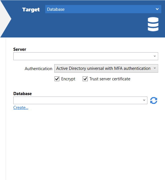 In the connection dialog, select Active Directory universal with MFA authentication (Azure) in the Authentication dropdown.