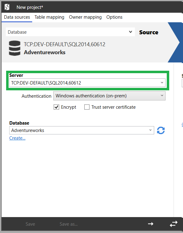 If your SQL Server is not running on the default port (1433), type the following in Server on the Project Configuration dialog box: