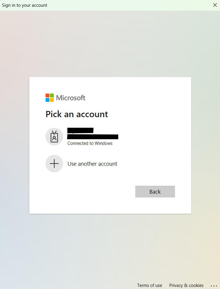 When you click the database refresh button, a popup will open asking you to pick an account to sign in with. Proceed with the sign in process.