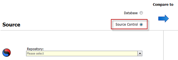 3. In the Repository box, select a database linked to SQL Source Control, or click <Browse source control...> to specify a repository URL.