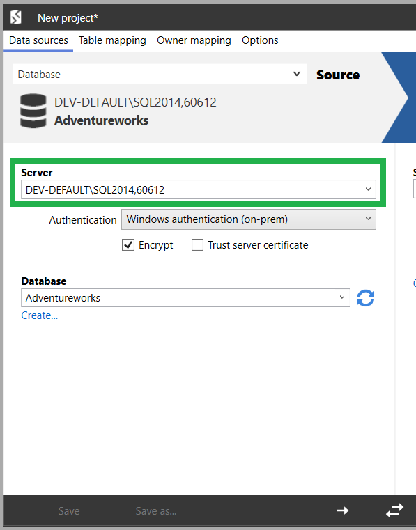 If your SQL Server is not running on the default port (1433), type the following in Server on the Project Configuration dialog box: