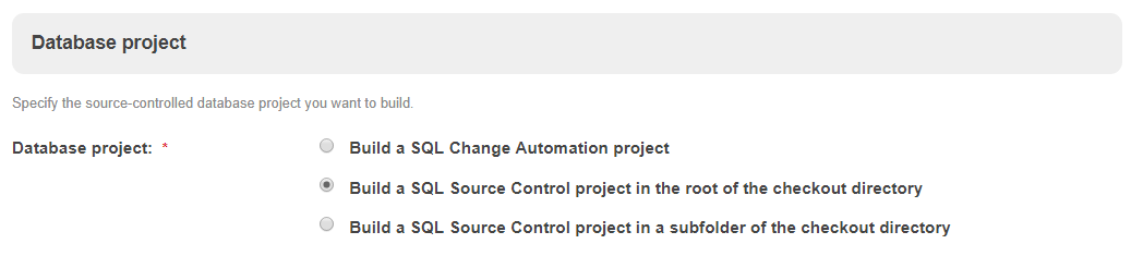 2. Build SQL Source Control project in a subfolder of the checkout directory.