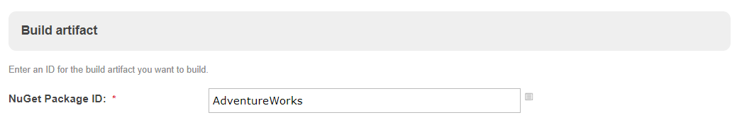 4. Under Build Artifact, insert the NuGet Package ID. This must be the same ID used to configure the Build step.