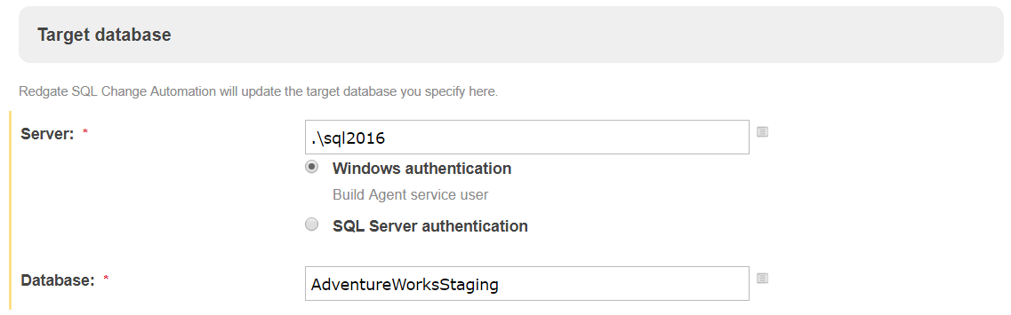 This tutorial takes you through each stage of setting up a database pipeline using TeamCity and the SQL Change Automation TeamCity plugin. You'll use the plugin to build, test and sync a SQL Source Control project.