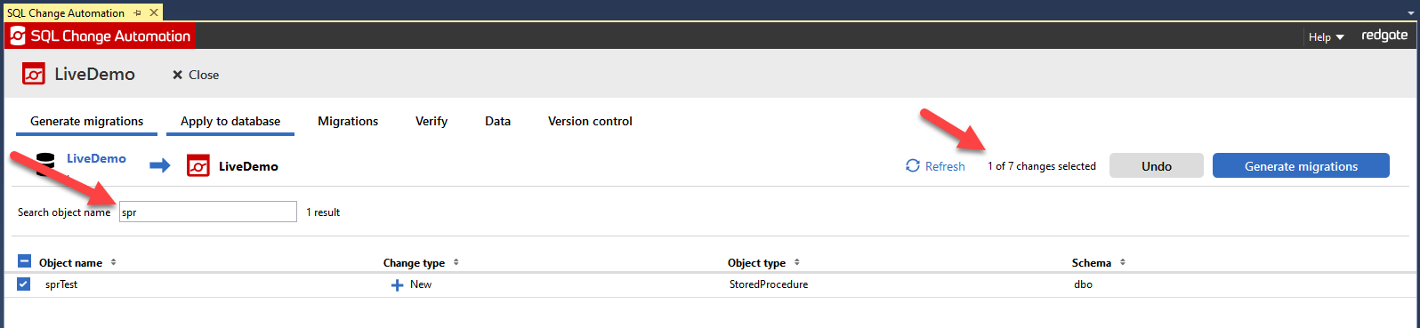 - SQL Change Automation will remember what you have selected prior to applying the filter, and after changing the filter