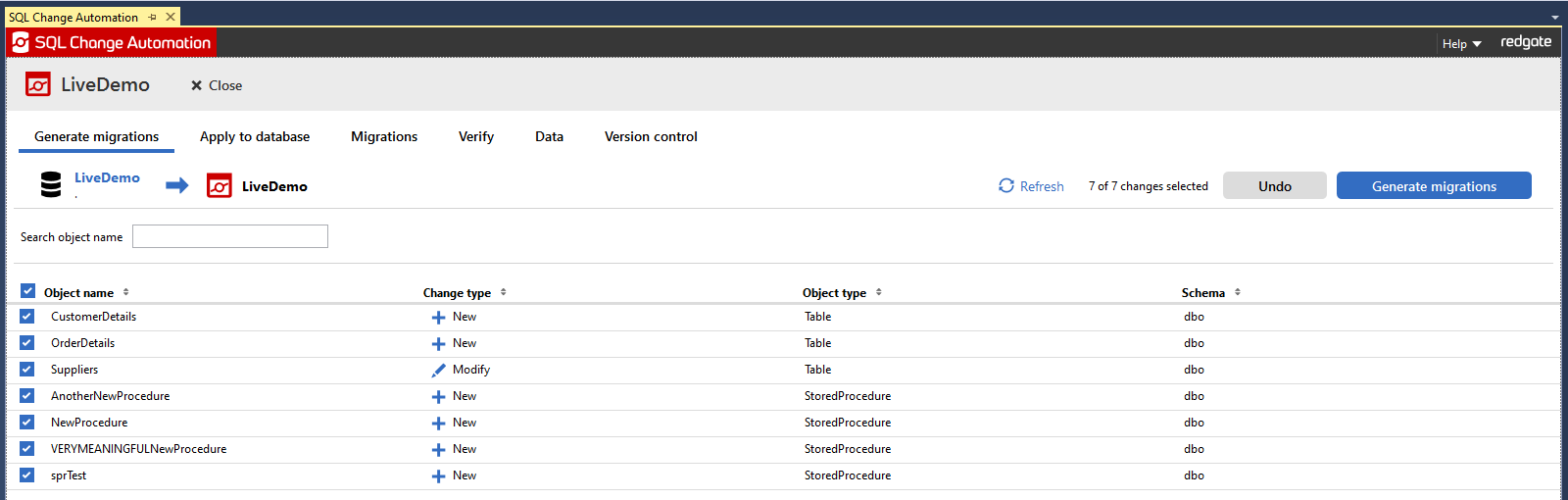- SQL Change Automation will remember which items you have de-selected over time, even after you close SSMS