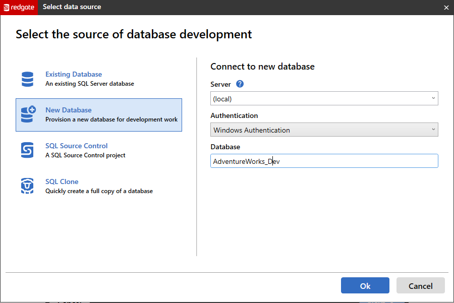 If you refresh your list of databases in the SSMS Object Explorer, you should see the newly created development database you specified in the project setup, generated from the specified SQL Clone image.
