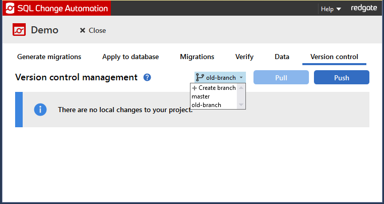 After you have created one or more commits, you can press the Push button to share these commits with the rest of your team. A push may fail if other members of your team have pushed changes before you. In order to resolve this, you will need to first Pull your team's changes before attempting to push again.