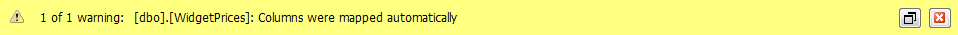 4. Map the DateValidTo and ValidTo columns in the same way, and click Close.The status for the WidgetPrices table changes to Mapped.