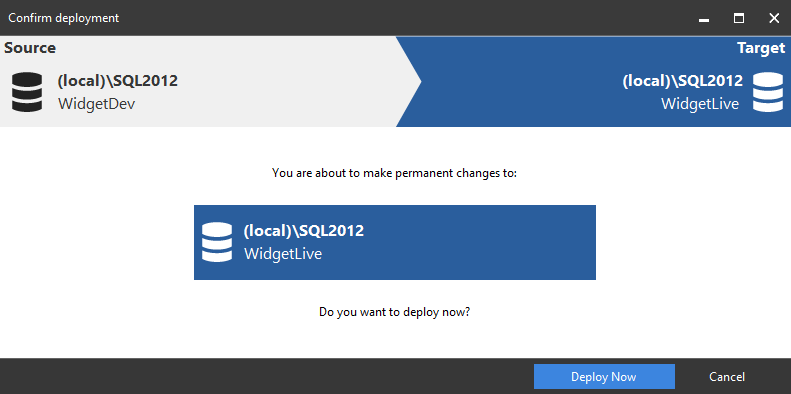 This worked example demonstrates a basic comparison and deployment of two SQL Server databases.