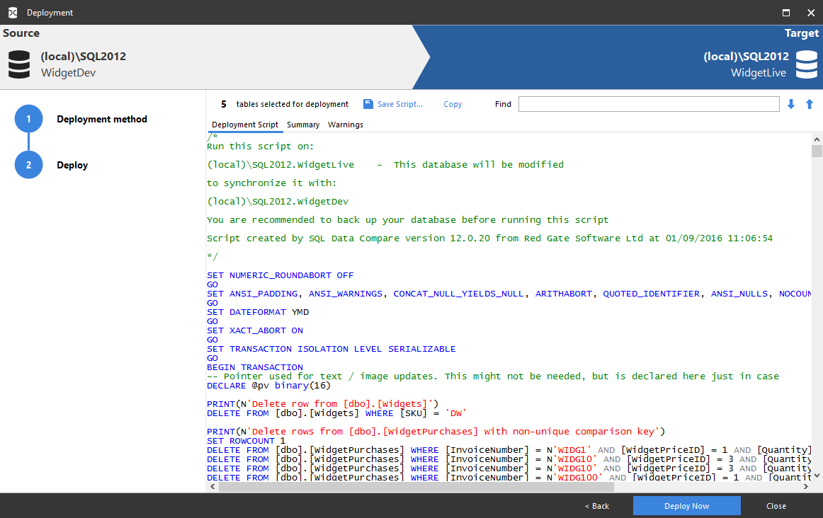 In this example, we will deploy using SQL Data Compare.