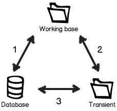 - The working base, a local copy of the database at the last time you ran a commit or a get latest. Like the transient, it's stored in your local application data.