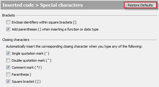 Insertion keys are also used to insert snippet code when you type a snippet into your query. The default insertion keys are ENTER and TAB.