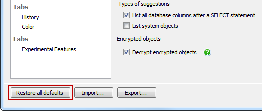 You can set various options for how SQL Prompt behaves in the SQL Prompt Options dialog box. This page describes the options available on the first page of the SQL Prompt Options, the Behavior page. For other more specific options, see the following: