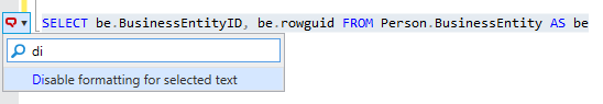 - In a query window, select the code you don't want SQL Prompt to format, and click Ctrl to open the actions list.
