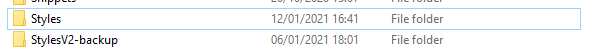 3. In the opened folder there will be folders called "Styles" and "StylesV2-backup". Rename these to "Styles-tmp" and "StylesV2-backup-tmp".