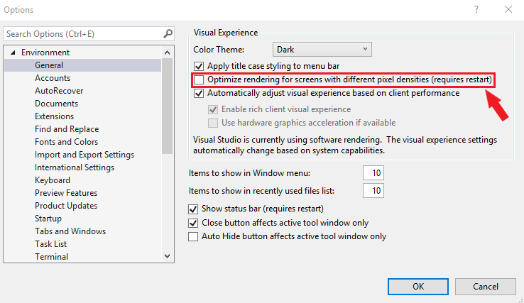 In Visual Studio 2019 tool windows (e.g. list of code analysis issues) may appear empty or with no background.