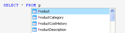 The following examples show how SQL Prompt can help you to write queries more quickly. All these examples use the AdventureWorks database for SQL Server 2005.