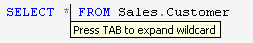 - To insert specific columns from the CUSTOMER table, rather than all the columns, move the cursor to just after the * (asterisk) and click the Backspace button to delete *.