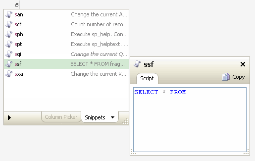 se* fr(include all the spaces)SQL Prompt will insert the matching suggestion whenever you press Space, so your query should now look like this: