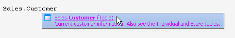 custo filter the list to the two customer tables, then press Enter to insert the first (highlighted) table:Customer.